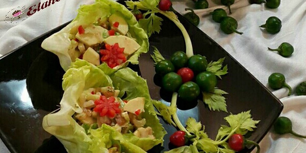 برگ کاهو، پر شده با سالاد نخود فرنگی